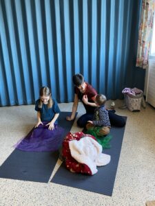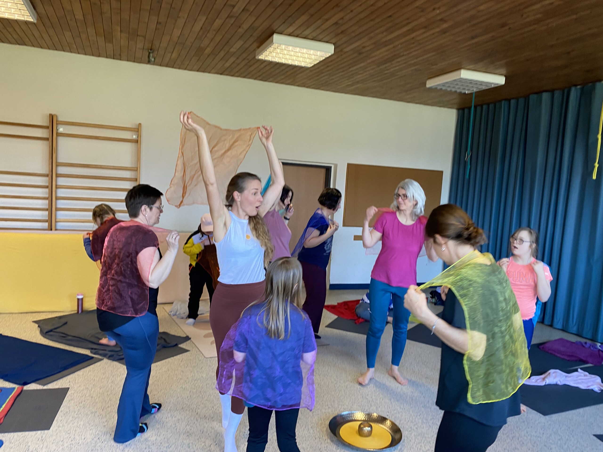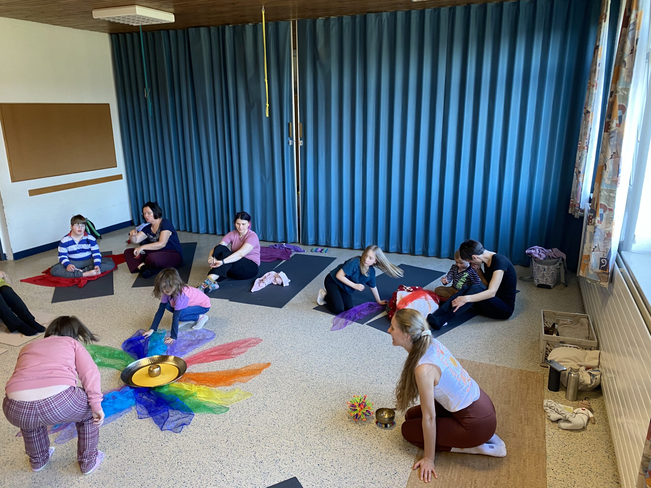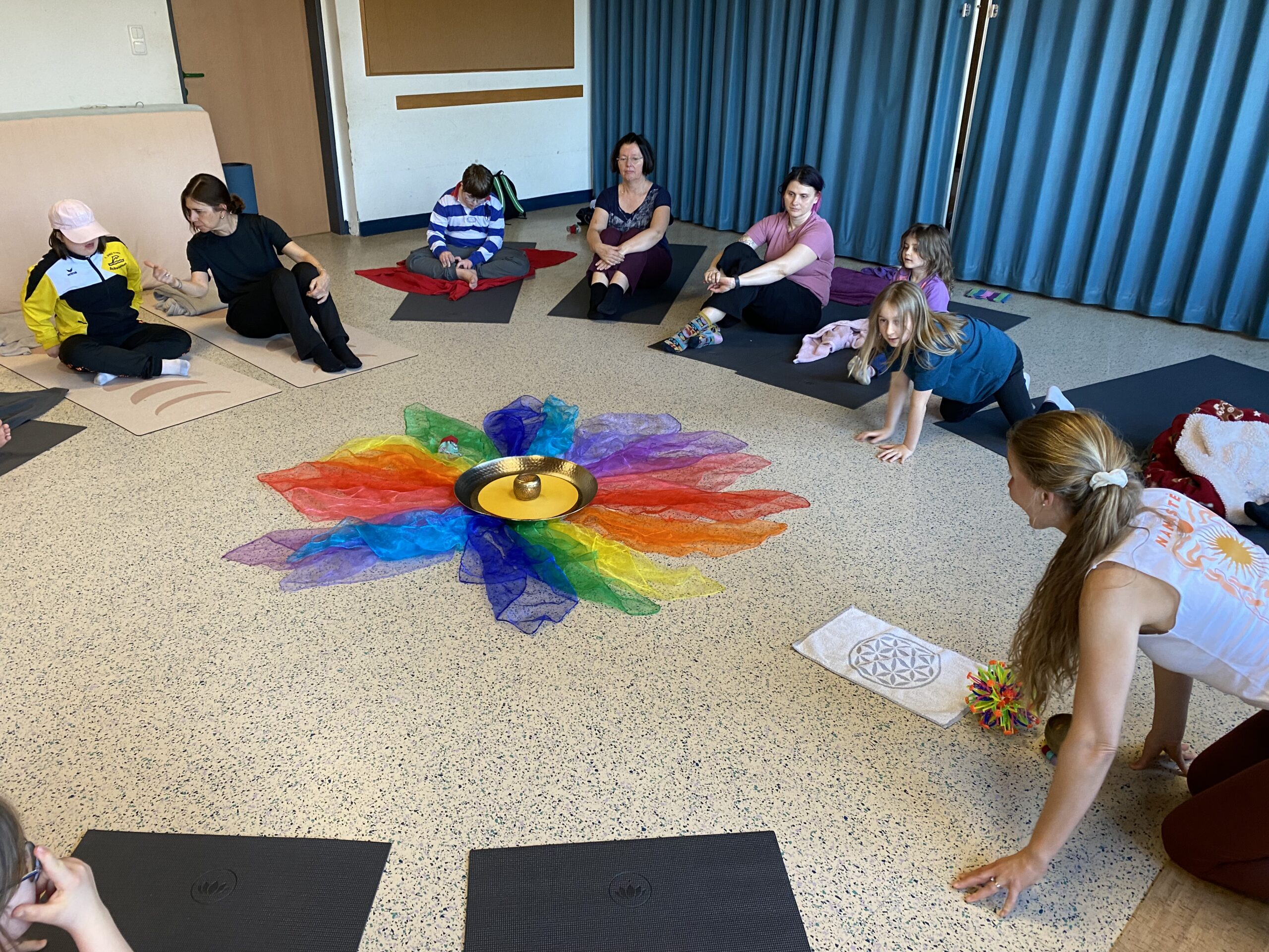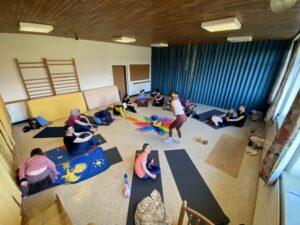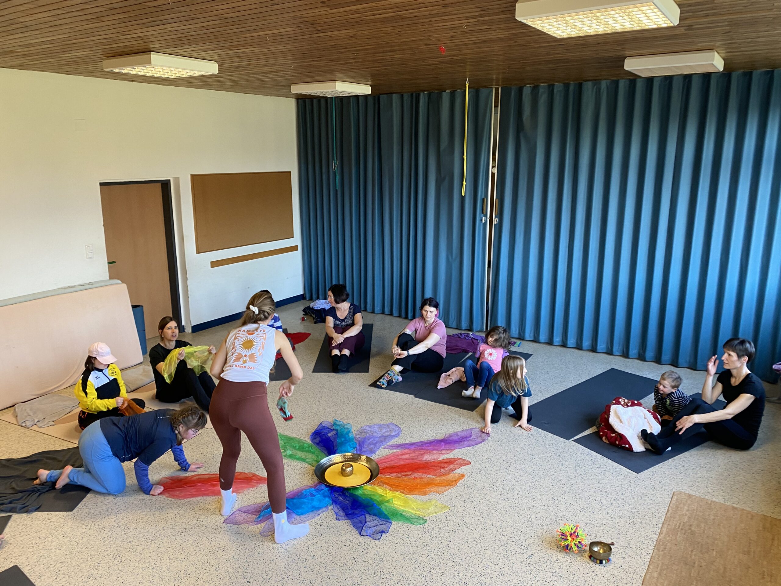Eltern und Kinder trafen sich neugierig zu dieser gemeinsamen Yoga-Reise mit Tina. Nach einer kurzen Begrüßung starteten wir spielerisch.