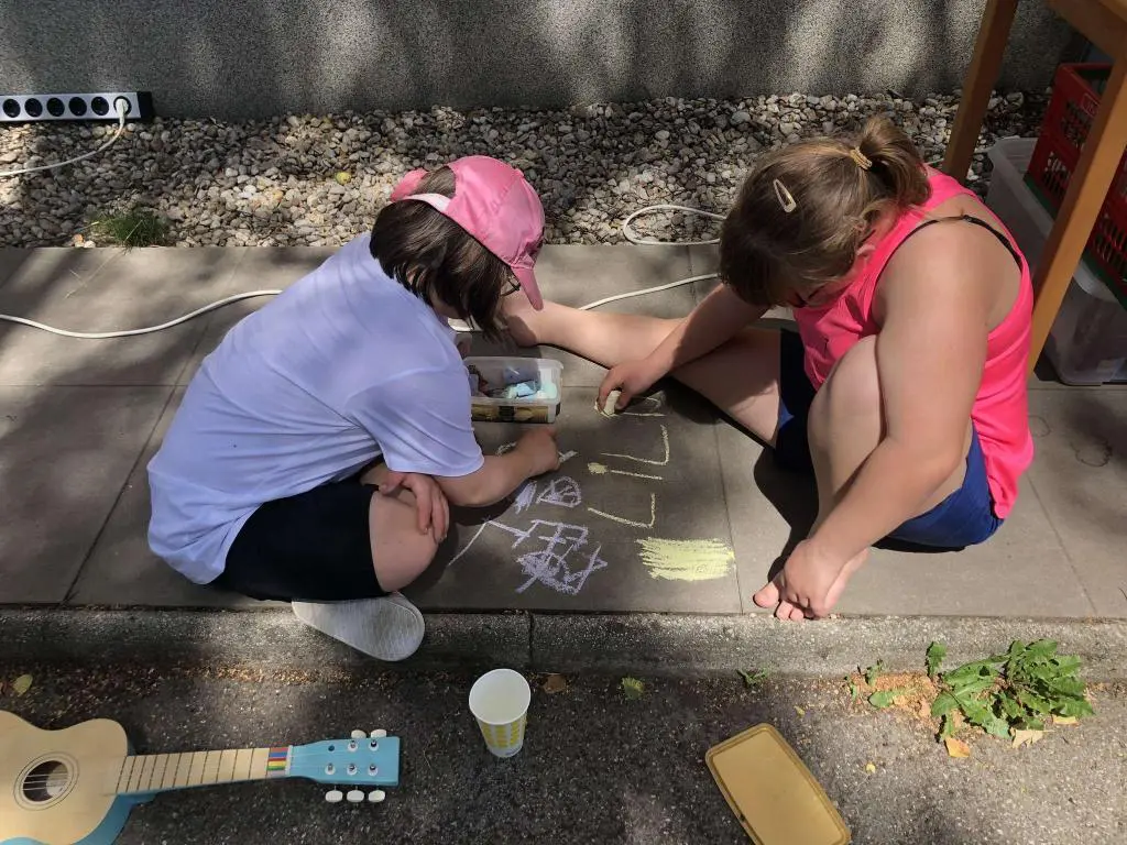 Während unsere kleinen Glücksbärlis das Beisammensein auf der Picknickdecke genossen und das bunte Treiben interessiert beobachteten, tobten die Größeren sonnenkinder am Spielplatz, im Turnsaal und auf der Fußballwiese herum, malten mit Straßenkreiden und erfrischten sich ausgelassen mit Wasserbomben.